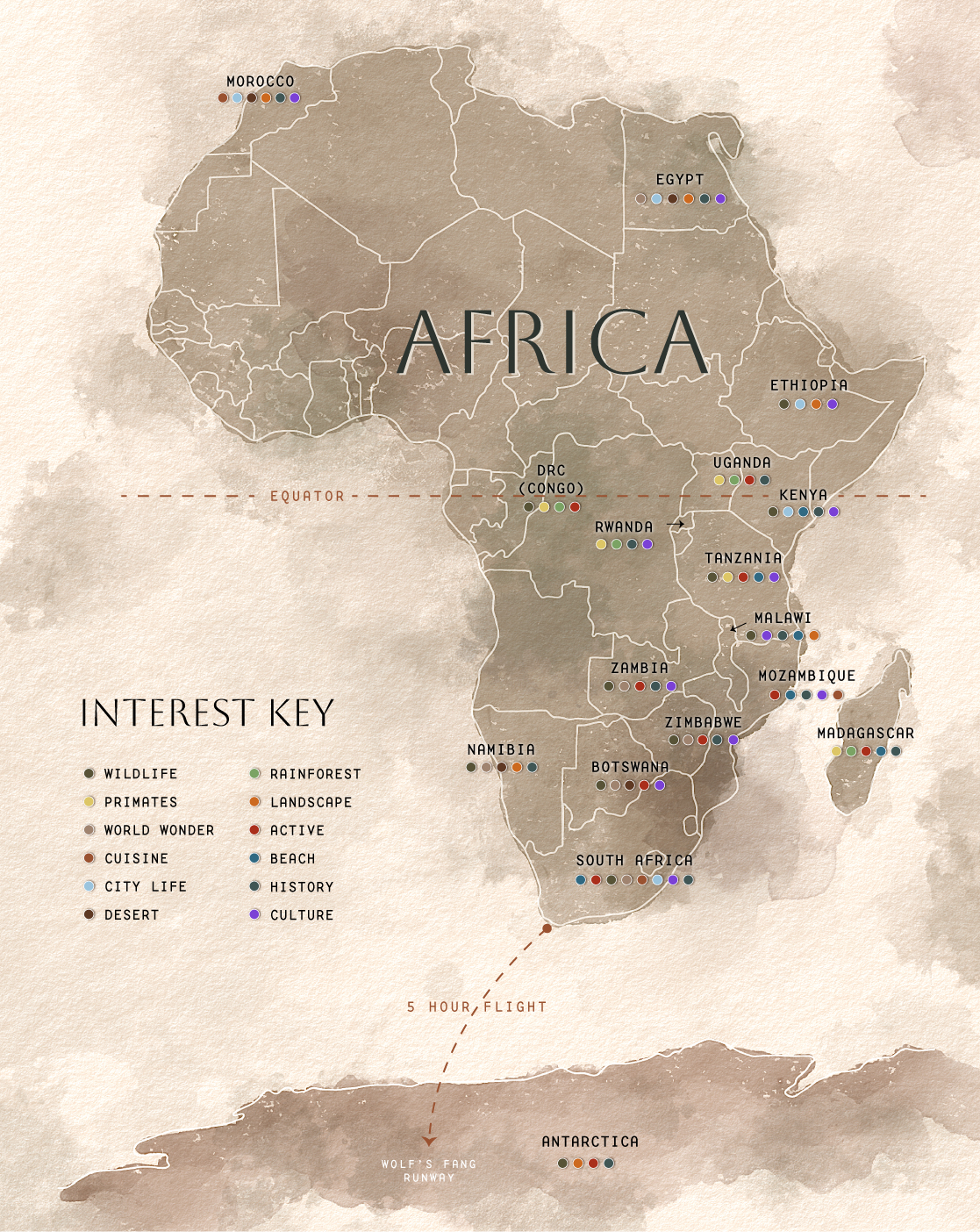 Let’s find what calls you! Click on the country names to learn more about their offered activities and seasonality, plus sample itineraries. Alternately, scan the icon list for your preferred activities and dive into those countries based on your specific interests.