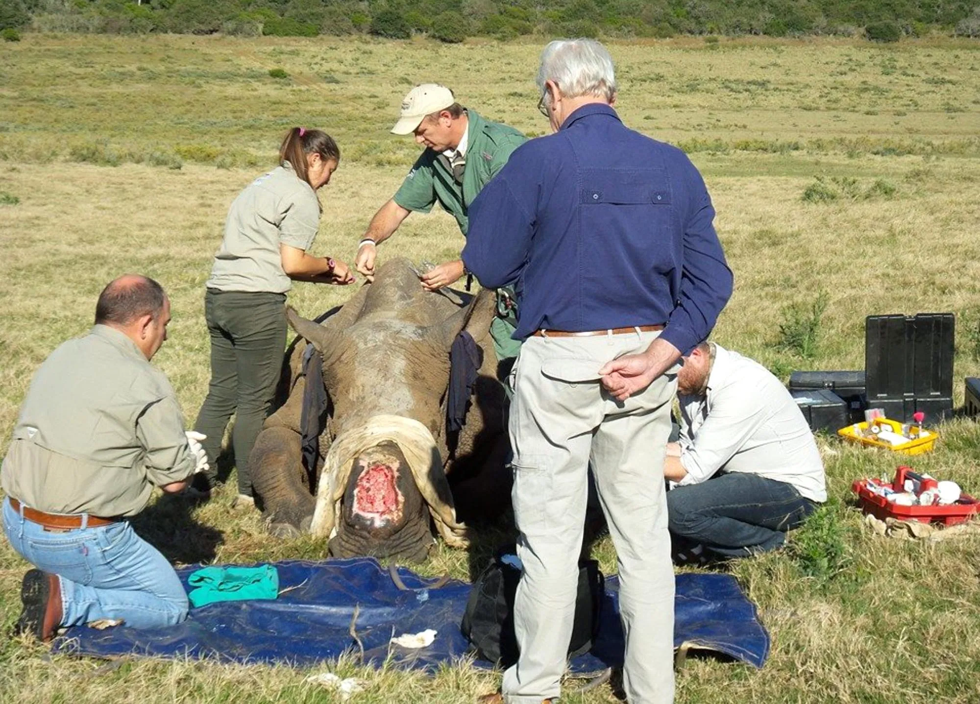 Pictured in blue is Alastair’s father, a renowned plastic surgeon who spearheaded the first skin graft on a rhino (Thandi) who was left for dead after her horn was taken. Her lengthy recovery was made possible by advanced science, patience, and – more than anything – extremely passionate individuals.